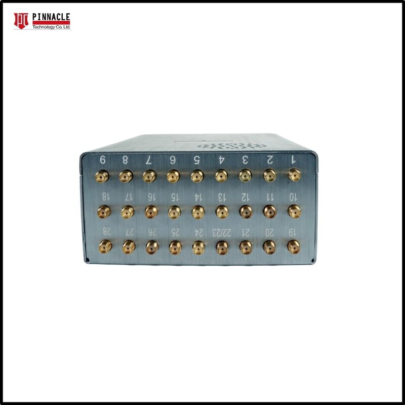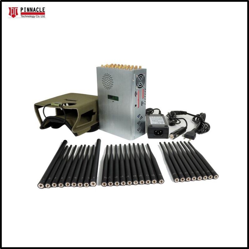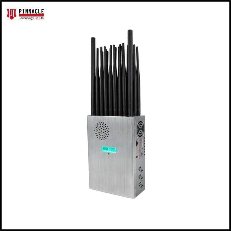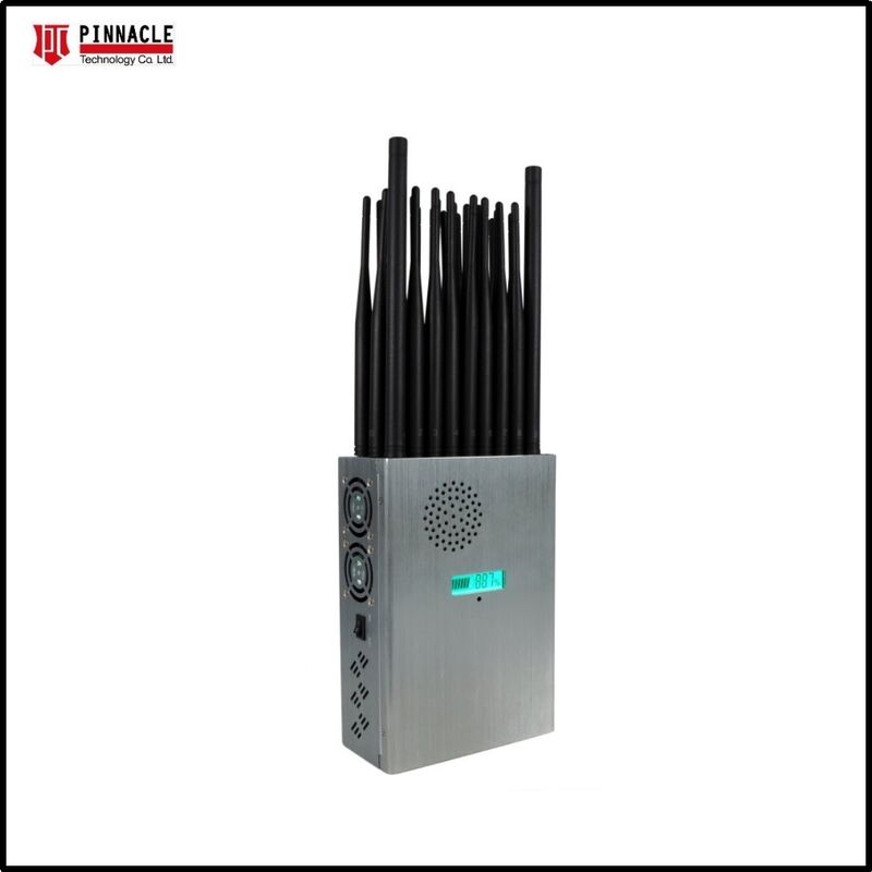 Bloqueador de sinal sem fio avançado de 28 bandas com design tudo-em-um, 28 antenas e capa de nylon para portabilidade. Bloqueia efetivamente todos os tipos de telefones Android, tablets, smartphones, iPhones, telefones Windows e outros dispositivos, protegendo sinais GSM, 3G, 4G, 5G, CDMA 450MHz, GPS, Glonass, Beidou, Wi-Fi 2.4G, Wi-Fi 5G, Wi-Fi 6E, Walkie-Talkie UHF/VHF e sinais de RF, incluindo 315, 433, 868, 915, LORA e LOJACK. Também funciona como um bloqueador de rádio FM de 88-108MHz. Possui display LCD de capacidade da bateria mostrando porcentagem de capacidade, tensão de trabalho e corrente.